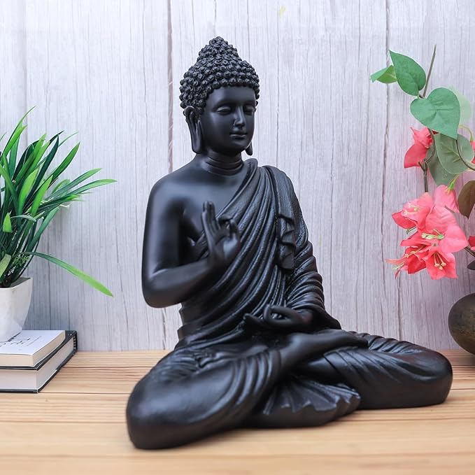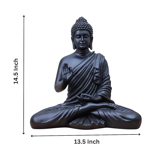 - Whether placed on a mantel, shelf, or tabletop, this Buddha statue serves as an inspiring showpiece. Its serene expression and meditative posture encourage a sense of mindfulness, creating a peaceful ambiance within your home or office.