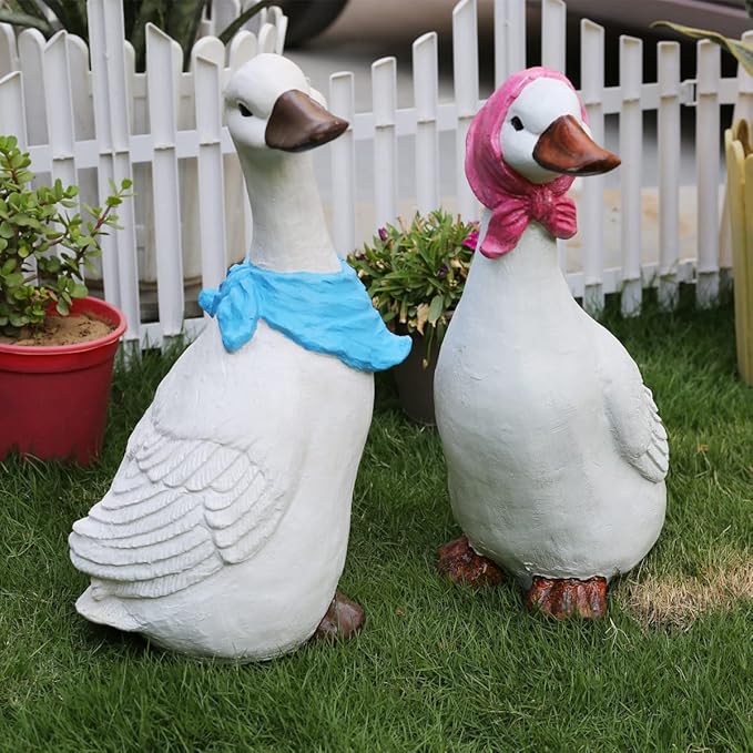 - Set of 2 Duck statue for garden and home decor